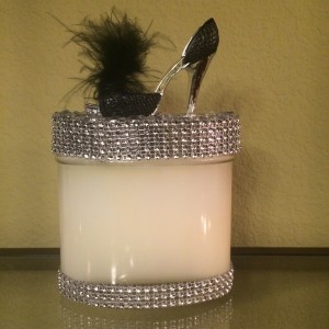 16 oz Candle Black & Silver Stiletto with a Black Feather